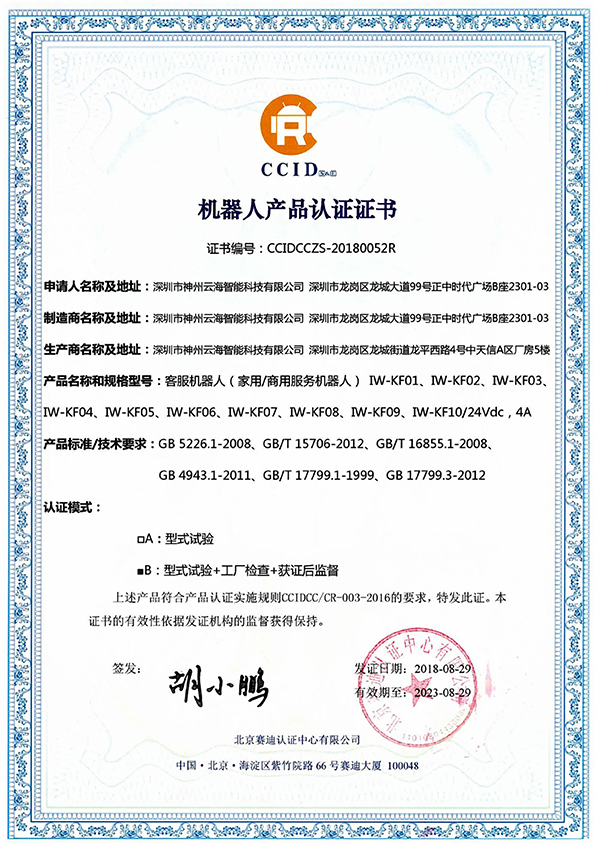 神州云海研發(fā)的艾娃客服機器人是一款室內(nèi)服務型機器人,它